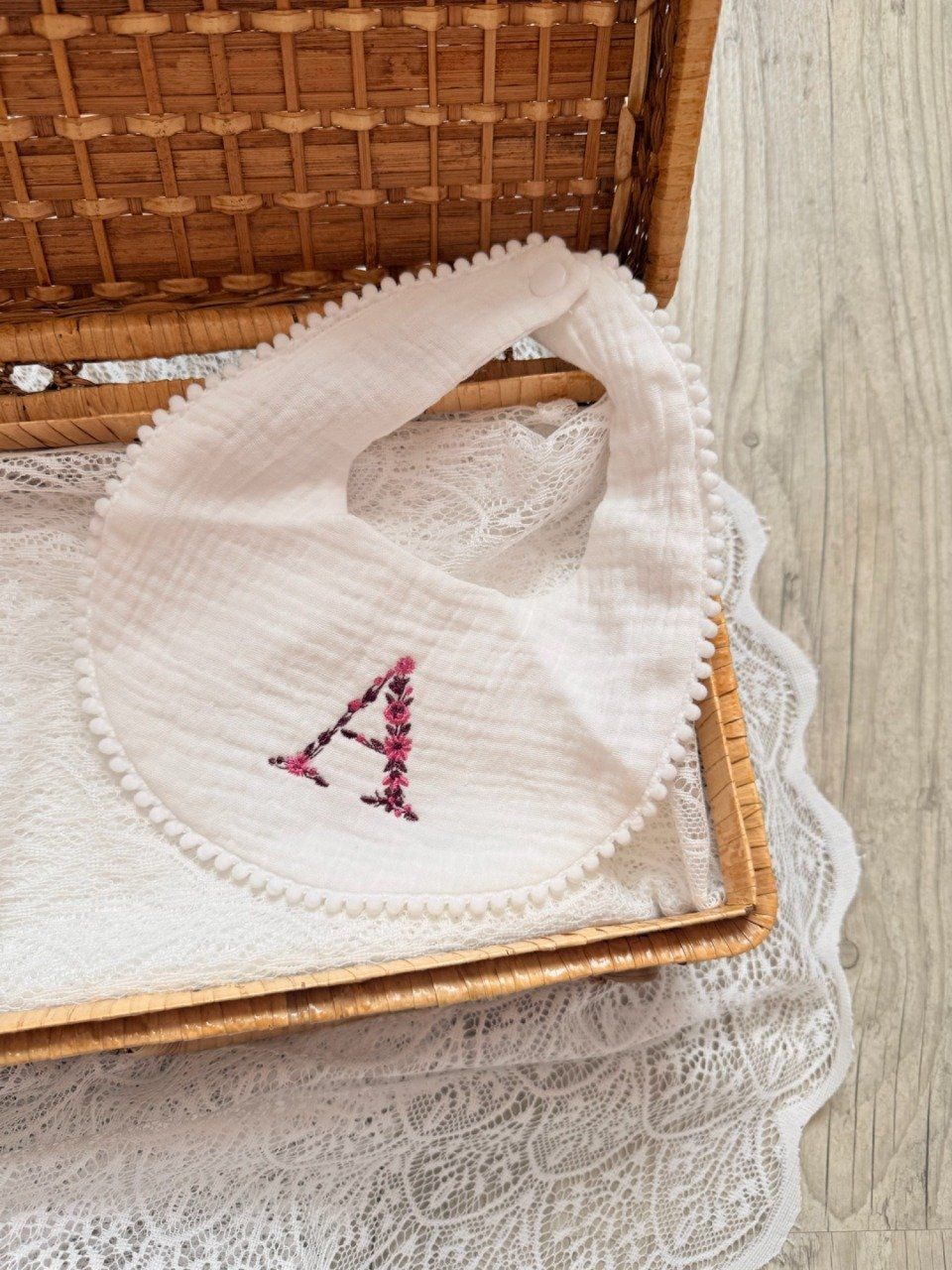 La broderie de l’initiale est réalisée avec soin pour offrir un rendu raffiné et durable. Ce bavoir personnalisé est une excellente idée de cadeau de naissance, de baby shower ou pour faire plaisir tout simplement.
