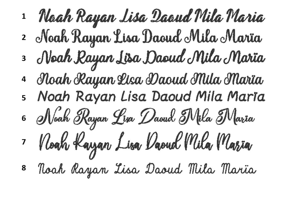 Le style de la broderie est disponible en 8 types d'écritures au choix.
