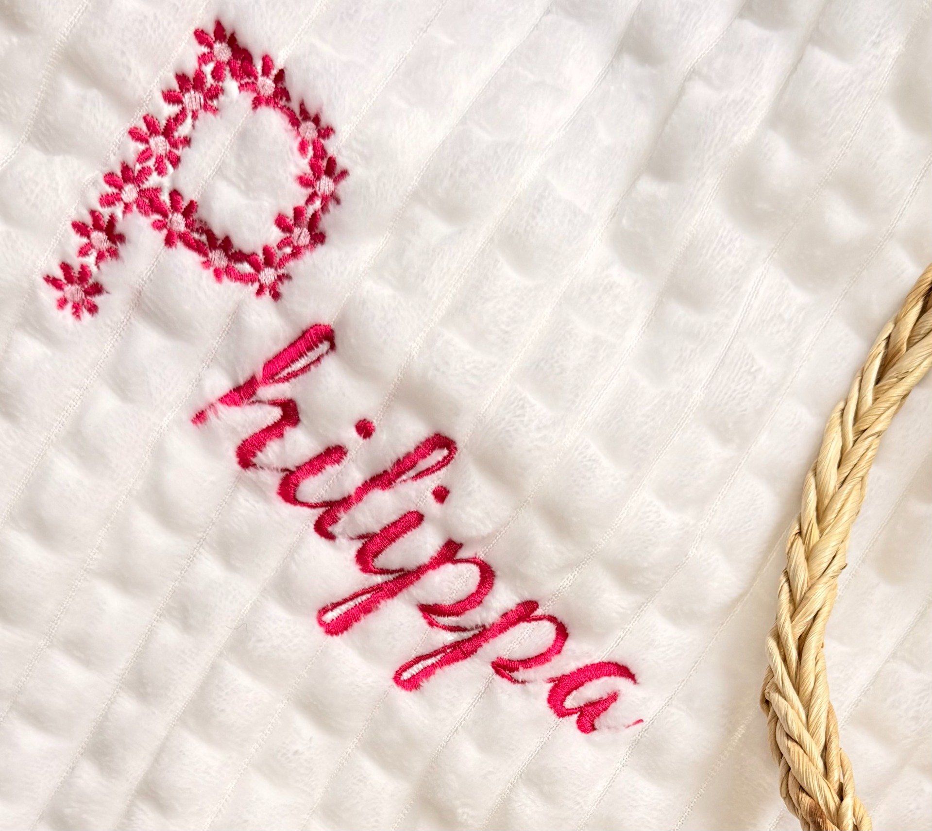 Couverture effet tricot brodée - Broderie lettrine fleurie